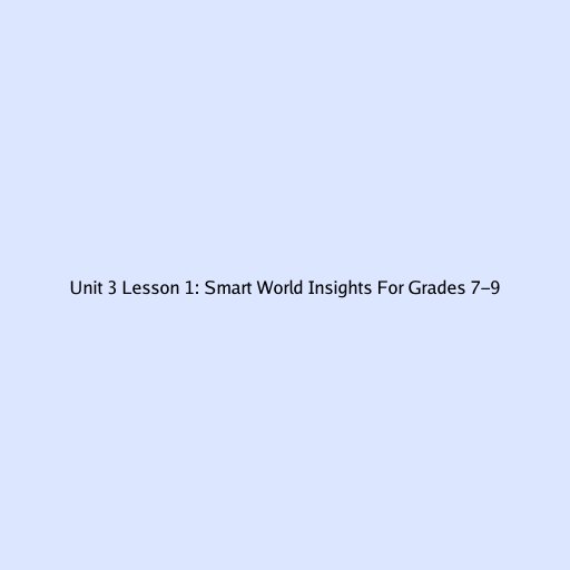 Unit 3 Lesson 1: Smart World Insights For Grades 7-9