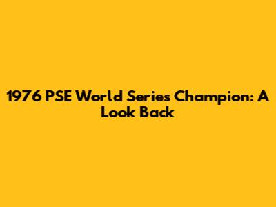 1976 PSE World Series Champion: A Look Back