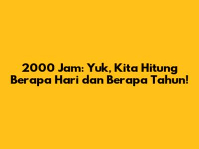 Wow! 2000 jam itu setara dengan 0.228 tahun. Atau, sekitar seperempat tahun. Untuk lebih jelasnya, kita bisa mengalikan 0.228 tahun dengan 12 bulan. Hasilnya sekitar 2.7 bulan. Jadi, 2000 jam itu setara dengan sekitar 2 bulan lebih.
