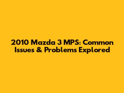 2010 Mazda 3 MPS: Common Issues & Problems Explored