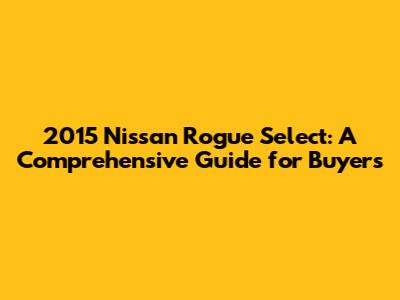 2015 Nissan Rogue Select: Your Ultimate Guide