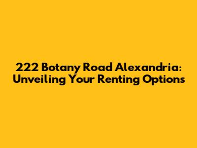 222 Botany Road Alexandria: Your Ultimate Renting Guide