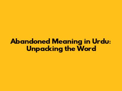 Abandoned Meaning In Urdu: Unpacking The Word