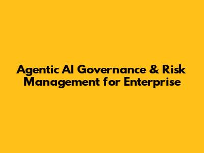 Agentic AI Governance & Risk Management For Enterprise