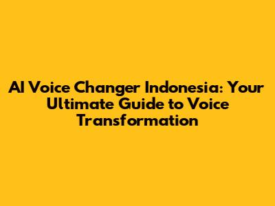 AI Voice Changer Indonesia: Your Guide To Voice Transformation