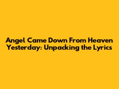 Angel Came Down From Heaven Yesterday: Unpacking The Lyrics