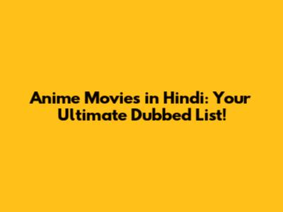 Anime Movies In Hindi: Your Ultimate Dubbed List!
