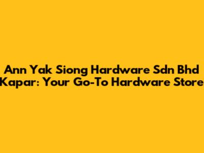 Hey guys! Looking for a reliable hardware store in Kapar? Look no further! Ann Yak Siong Hardware Sdn Bhd is your one-stop shop for all things hardware. Whether you're a seasoned contractor, a DIY enthusiast, or just need to fix something around the house, this place has got you covered. Let's dive into what makes Ann Yak Siong Hardware Sdn Bhd a must-visit in Kapar.