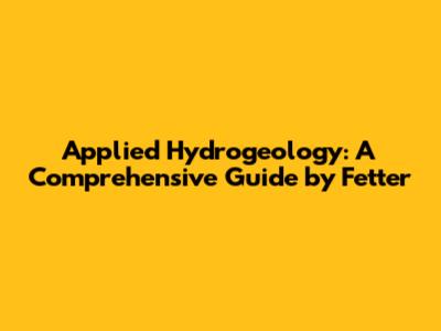 Applied Hydrogeology: A Comprehensive Guide By Fetter