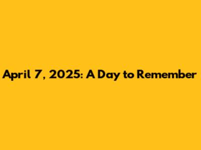 April 7, 2025: A Look Back At The Key Events