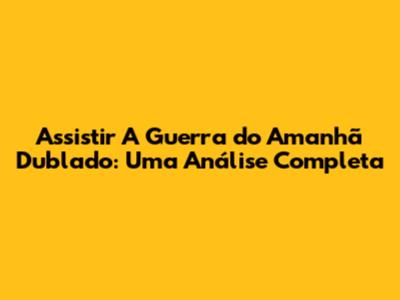 Assistir 'A Guerra Do Amanhã' Dublado: Uma Análise Completa