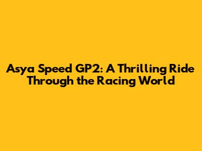 Unveiling Asya Speed GP2: What's the Hype?