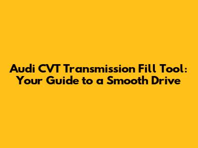 Audi CVT Transmission Fill Tool: Your Guide To A Smooth Drive