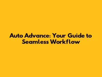 Auto Advance: Your Guide To Seamless Workflow