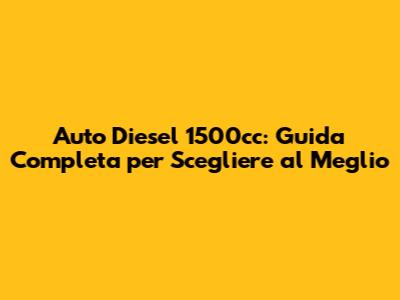 Auto Diesel 1500cc: Guida Completa Per Scegliere Al Meglio