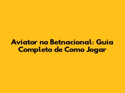 Aviator No Betnacional: Guia Completo De Como Jogar