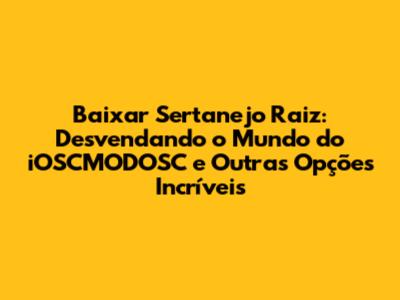 iOSCMODOSC Sertanejo Raiz: O Que É e Como Funciona?