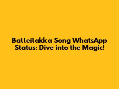 Balleilakka Song WhatsApp Status: Lyrics, Downloads, And More!