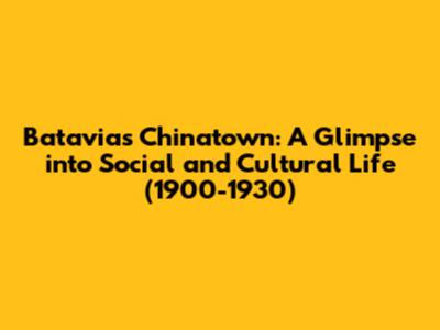 Batavia's Chinatown: A Glimpse Into Social And Cultural Life (1900-1930)