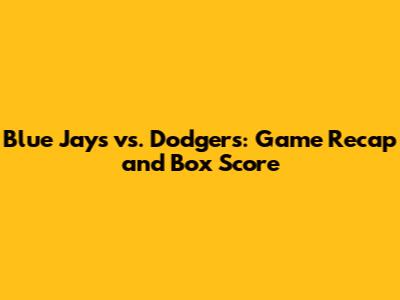 Blue Jays Vs. Dodgers: Game Recap And Box Score