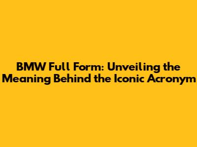Why Knowing the BMW Full Form Matters