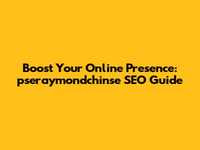 Boost Your Online Presence: Pseraymondchinse SEO Guide