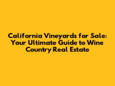 California Vineyards For Sale: Your Guide To Wine Country Real Estate