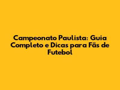 Campeonato Paulista: Guia Completo E Dicas