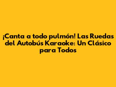 ¡Hola a todos los amantes de la música y el karaoke! ¿Están listos para un viaje musical lleno de diversión? Hoy, vamos a sumergirnos en el mundo mágico de "Las Ruedas del Autobús Karaoke". Esta icónica canción infantil, con su ritmo pegadizo y letra sencilla, es perfecta para cantar en familia, con amigos o incluso ¡en solitario! Prepárense para una experiencia inolvidable donde la risa y la alegría son los pasajeros principales. En este artículo, exploraremos todo lo que necesitan saber sobre "Las Ruedas del Autobús" en formato karaoke, desde su origen hasta cómo disfrutarla al máximo. ¡Así que, agarren sus micrófonos y prepárense para cantar!