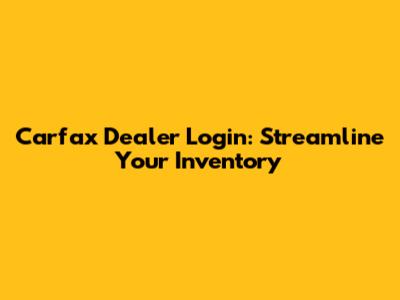 Carfax Dealer Login: Streamline Your Inventory