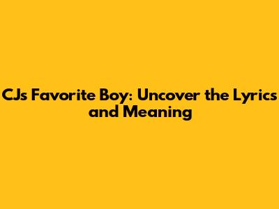 CJ's Favorite Boy: Uncover The Lyrics And Meaning