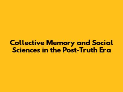 Collective Memory & Social Sciences In The Post-Truth Era