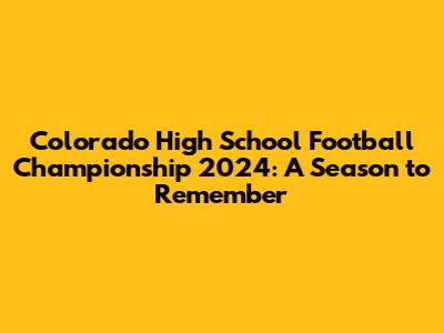 Colorado High School Football Championship 2024: A Season To Remember