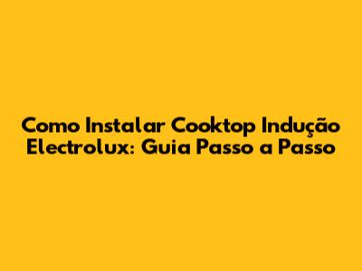 Como Instalar Cooktop Indução Electrolux: Guia Passo A Passo