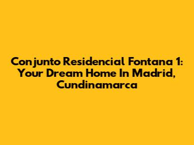 Hey guys, let's talk about finding your perfect pad in Conjunto Residencial Fontana 1, nestled in the vibrant town of Madrid, Cundinamarca. If you're on the hunt for a place that offers comfort, community, and a touch of modern living, then you've landed in the right spot. We're diving deep into what makes this residential complex a standout choice for so many, from families to young professionals looking for a peaceful retreat that's still super connected. Madrid itself is a gem in Cundinamarca, offering a blend of tranquil rural vibes with the convenience of proximity to Bogotá. Imagine waking up to the fresh air and then being able to commute to the city without feeling like you're miles away. That's the sweet spot that Fontana 1 occupies. This isn't just about four walls and a roof, folks; it's about investing in a lifestyle. We're talking about a place where you can build memories, where kids can play safely, and where you can genuinely feel at home. The developers have clearly put a lot of thought into creating a space that caters to modern needs, balancing aesthetic appeal with practical living. So, buckle up as we explore the ins and outs of Conjunto Residencial Fontana 1, helping you figure out if this is *the one* for your next big move. We'll cover everything from the types of properties available to the amenities that make life here a breeze. Get ready to fall in love with the idea of calling Madrid, Cundinamarca, your new home base, with Fontana 1 as your central hub.