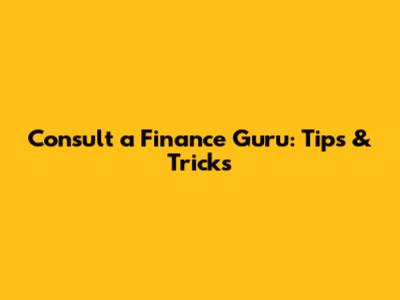 Consult A Finance Guru: Tips & Tricks