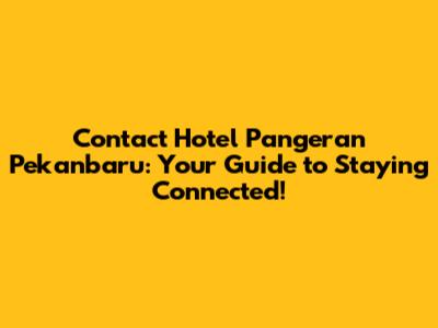 Contact Hotel Pangeran Pekanbaru: Phone Number & More!