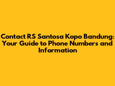 Contact RS Santosa Kopo Bandung: Phone Numbers & Info