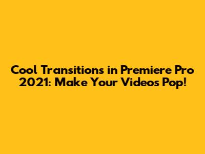 Cool Transitions In Premiere Pro 2021: Make Your Videos Pop!
