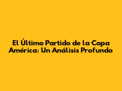 El último partido de la Copa América tuvo un impacto que trascendió el resultado del encuentro. En este análisis, exploraremos las consecuencias del partido, desde el reconocimiento de los jugadores hasta el impacto en la clasificación de los equipos. Analizaremos cómo este partido influyó en la historia del torneo y en el futuro del fútbol sudamericano. Prepárense para descubrir el impacto del partido en el fútbol sudamericano.