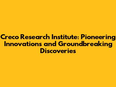 Creco Research Institute: Innovations And Discoveries
