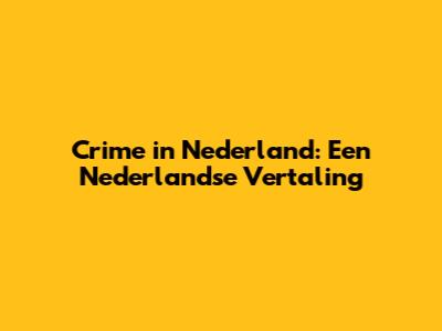 Crime In Nederland: Een Nederlandse Vertaling