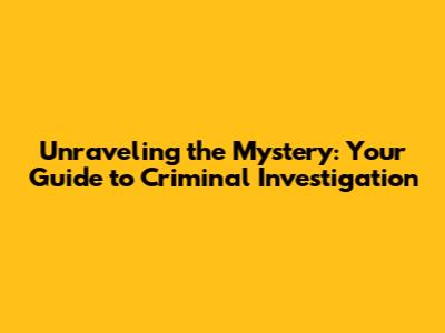 Unraveling the Mystery: Your Guide to Criminal Investigation