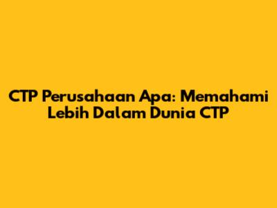Hai, teman-teman! Pernahkah kalian mendengar tentang CTP? Atau mungkin kalian sering melihatnya tapi tidak begitu tahu apa itu? Jangan khawatir, karena kali ini kita akan membahas tuntas mengenai CTP, mulai dari pengertiannya, fungsinya, hingga perusahaan-perusahaan apa saja yang terlibat di dalamnya. Mari kita bedah bersama-sama!