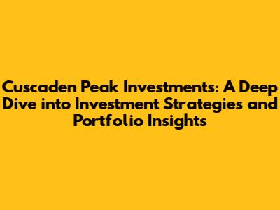 Cuscaden Peak Investments: Unveiling Investment Strategies