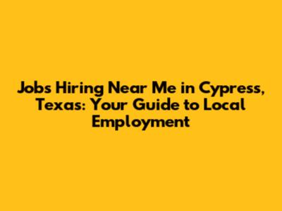 Cypress, TX Job Opportunities: Find Your Next Role