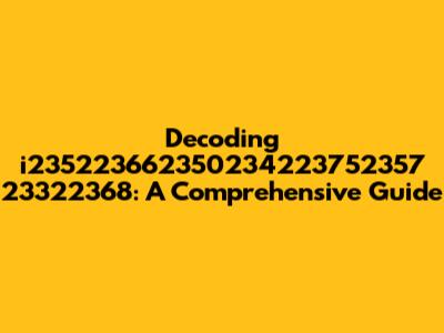 Decoding I235223662350234223752357 23322368: A Comprehensive Guide