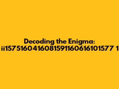 Decoding The Enigma: Ii1575160416081591160616101577 1