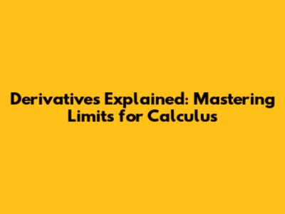 Derivatives Explained: Mastering Limits For Calculus
