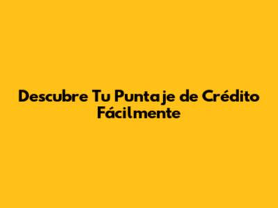 Descubre Tu Puntaje De Crédito Fácilmente